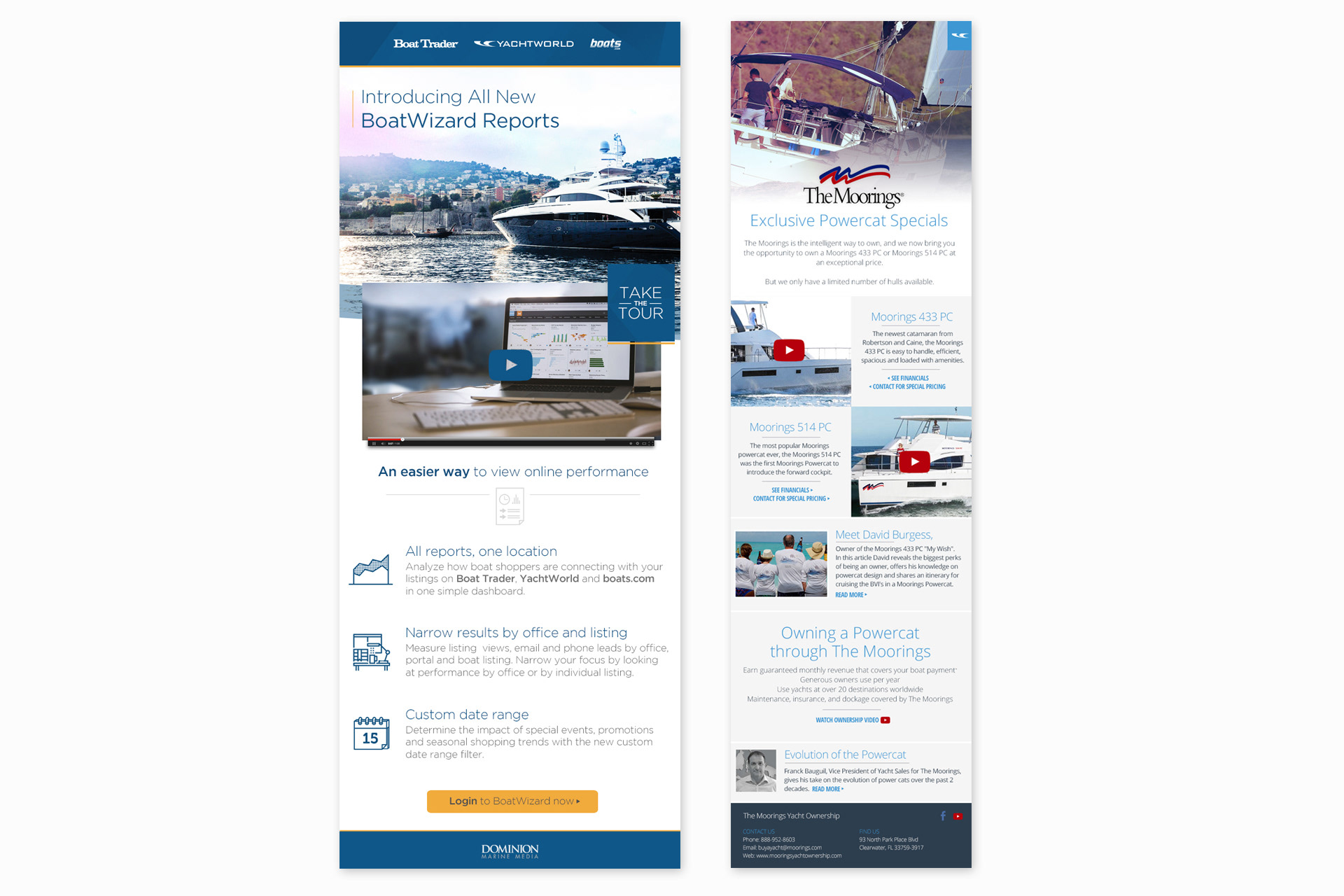 Various email campaigns created for Boats Group/Dominion Marine Media