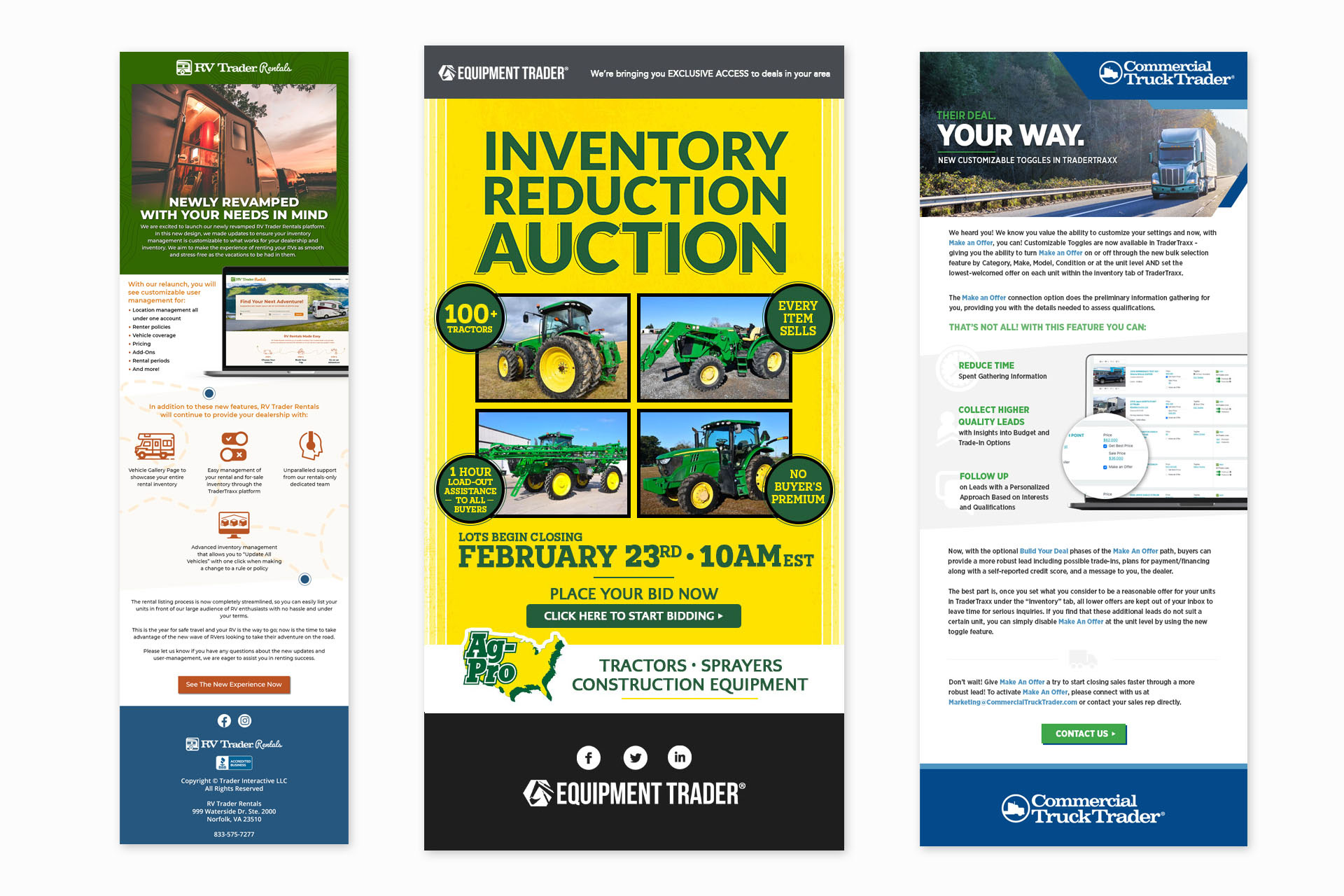 Various email campaigns created for the brands of Trader Interactive