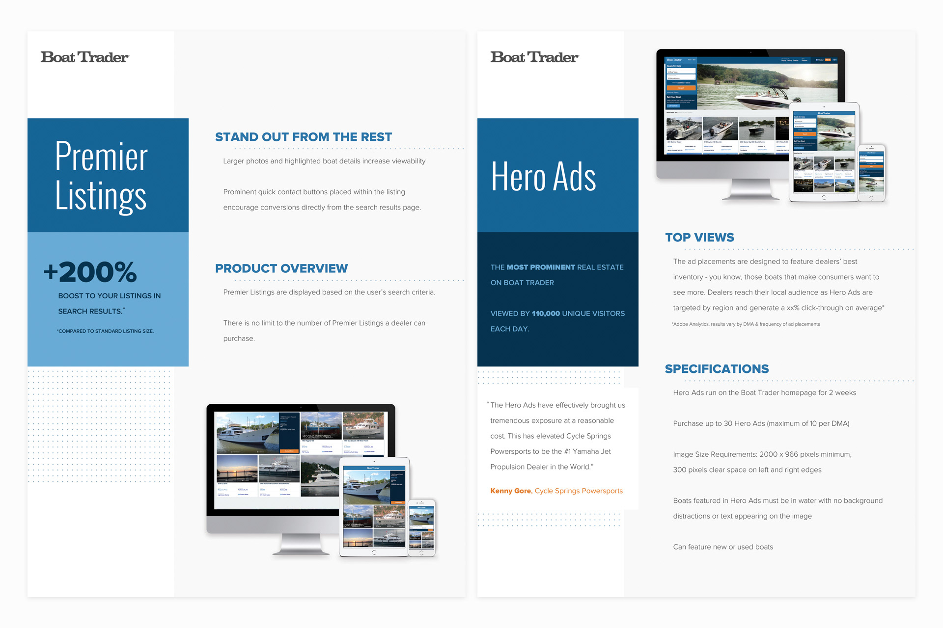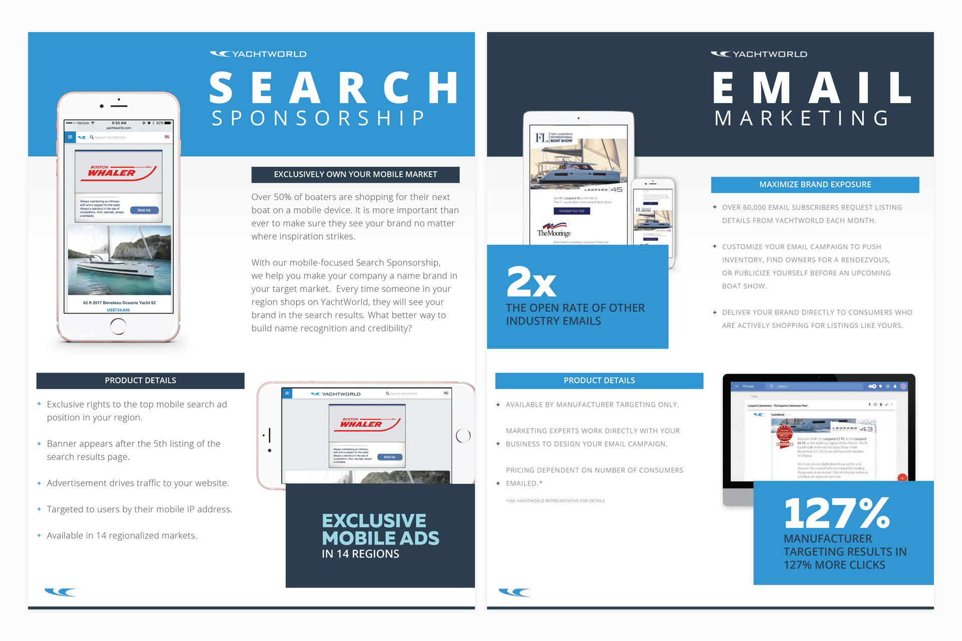 Collateral pieces describing the products on offer from the brands of Boats Group